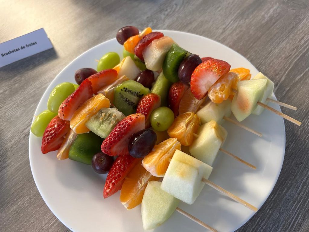 Las brochetas de frutas son ideales para aportar frescura y variedad a la mesa, especialmente en eventos donde se busca una alternativa más liviana y natural.