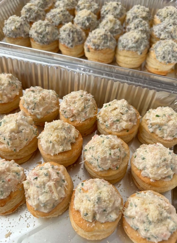 Se elaboran a pedido con una masa hojaldrada suave y crujiente, junto a rellenos cremosos y sabrosos, logrando un bocado equilibrado y muy bien presentado.